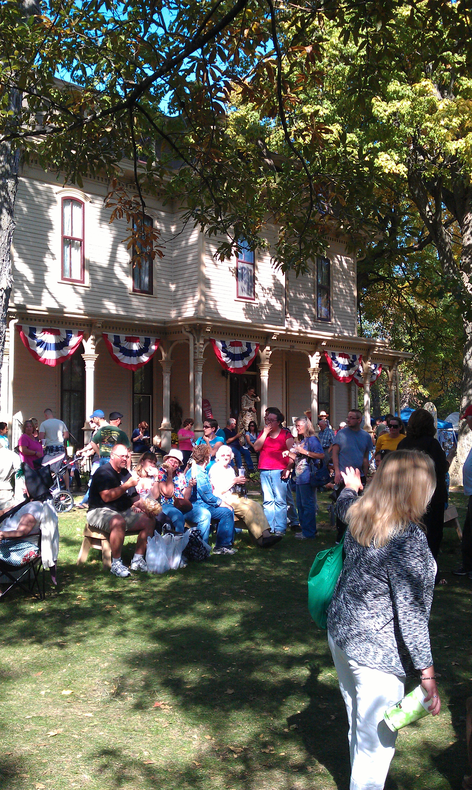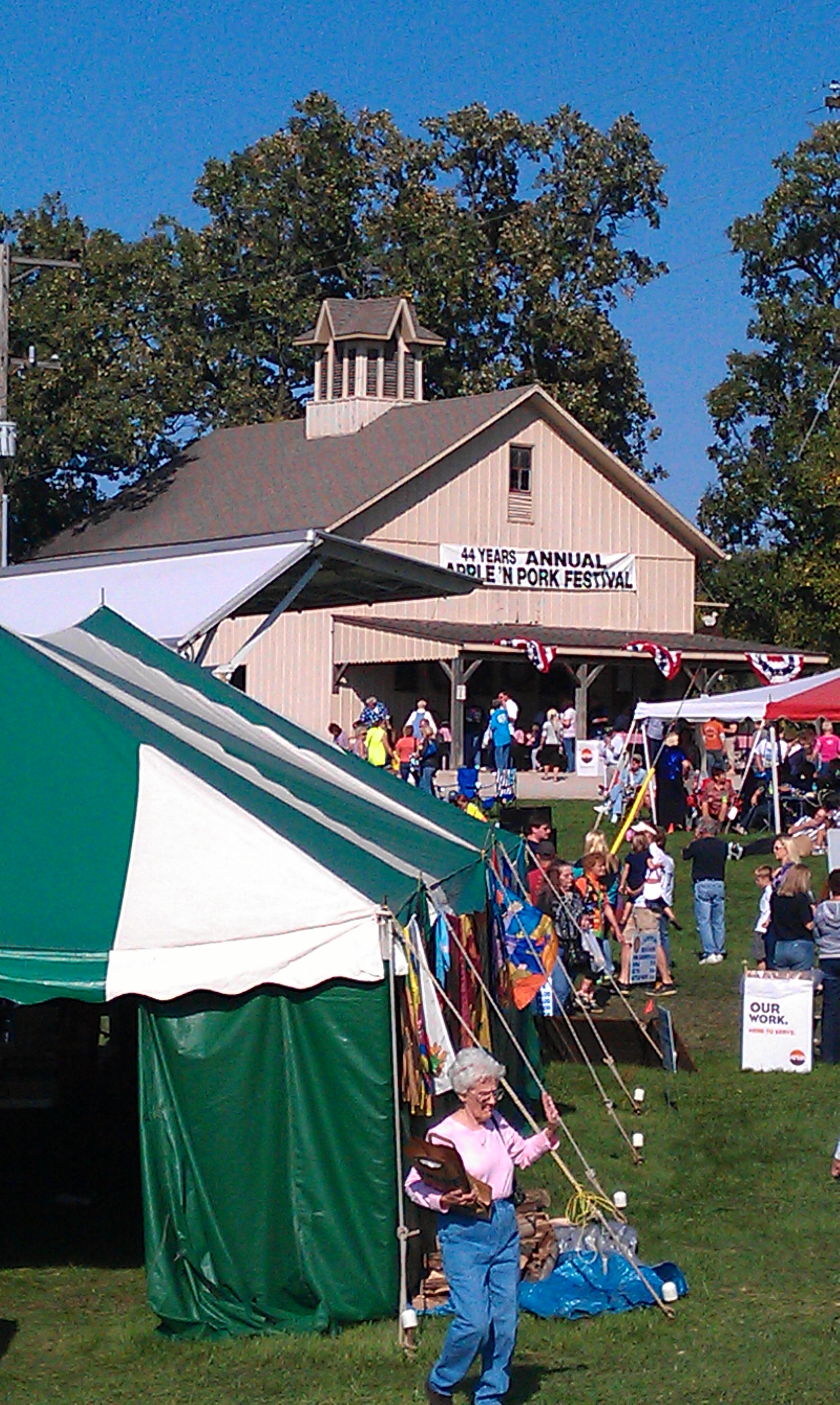 The Apple and Pork Festival really takes over my tiny town. What started as something that only took place at the Homestead (the C.H. Moore mansion grounds) has over the years expanded to include the several blocks from the Homestead to the Square and the antique mall and high school out on the west side of town. They run a bus from the Square to the high school and a tram from the Square to the Homestead to help people cover the entire thing.