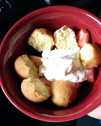 And since it can look like I’m on a diet, then it also looks like I’m going off my diet or cheating on my diet when I talk about eating my weight in Sorrento’s pizza. Or when I talk about drowning my sorrows in ice cream because the Cubs lost. Or when I post pictures of me eating a plain cake doughnut with strawberries and whipped cream. Or any other time I talk about eating stuff that’s “bad” (the labeling of certain foods as bad irks me, but again, another post).
